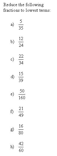 Reduce Fractions Exercises